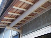 ひさし 勝手口のひさし 杉丸太を使用。 この形状のひさしが大好きです。 |
