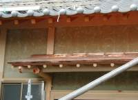 ひさし02 杉づくり こんな庇 普通は玄関?! 廻りが仕上がってくるとより映えてくるでしょう。 屋根は銅板葺きです。 |