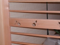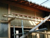 壁下地用 貫き・壁杭 この上に割り竹を編んでいきます。 竹は旬(9月から12月の間)に切られたものが良いとされています。 だんだん内地産の良い竹を手に入れるのが難しくなって来ています。 貫には、構造的役割もあります。 |