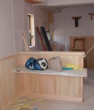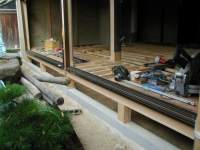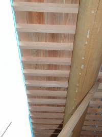 縁カツラを入れる。 吉野桧の縁カツラを入れました。 その下には、杉板を貼る予定です。 |