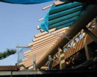 軒先を眺める 下地の工程を終え、瓦が葺かれるのを待つだけです。 |