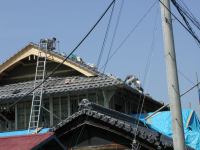 瓦 葺き 職人さんの手により1枚1枚葺かれていく。 土葺きは地震にどうこう言われているが、実際 釘うち葺きにするとどれくらい土の量が減らせるかご存知であろうか? また、長年使っていく上での、メンテナンスのやり難さを知ってもらいたい。 土はもちろん腐らせたものを使用します。 |