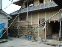 左官工事 職人さんが何工程も塗り重ねていきます。 腐った土はひとたび木材につくと土のあくが出て取れません。 慎重に塗っていくのが職人技です。 |