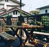 ウッドデッキにパラソル・テーブルをあしらうと立派なオープンテラスが出来上がりました!